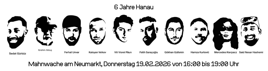 Am 19. Februar 2026 jähren sich die rassistischen Morde bereits zum 6. Mal. Ferhat Unvar, Hamza Kurtović, Said Nesar Hashemi, Vili-Viorel Păun, Mercedes Kierpacz, Kaloyan Velkov, Fatih Saraçoğlu, Sedat Gürbüz und Gökhan Gültekin wurden an diesem Tag in Hanau aus dem Leben gerissen. Und dieses Jahr erlag auch Ibrahim Akkuş seinen Verletzungen vom 19. Februar.